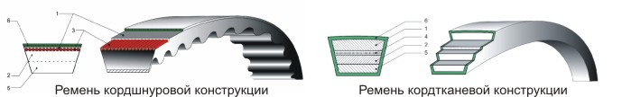 Ремни состоят из несущего слоя на основе материалов из химических волокон (кордшнура или кордной ткани),